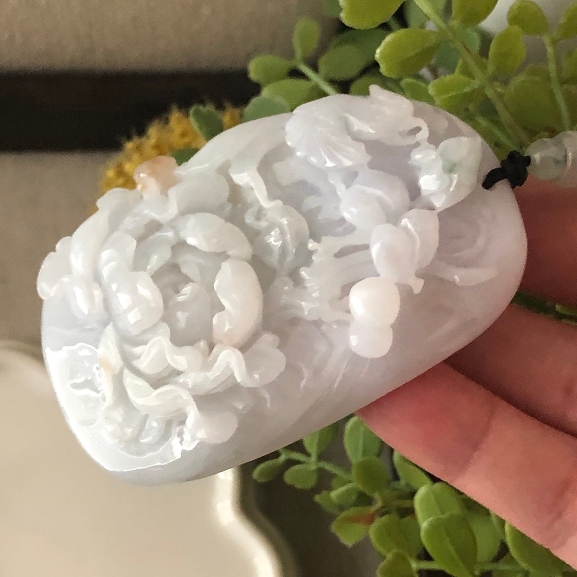 66.5mm Jadeite Jade Icy Fine Glutinous Carved Floral Scenery Pendant