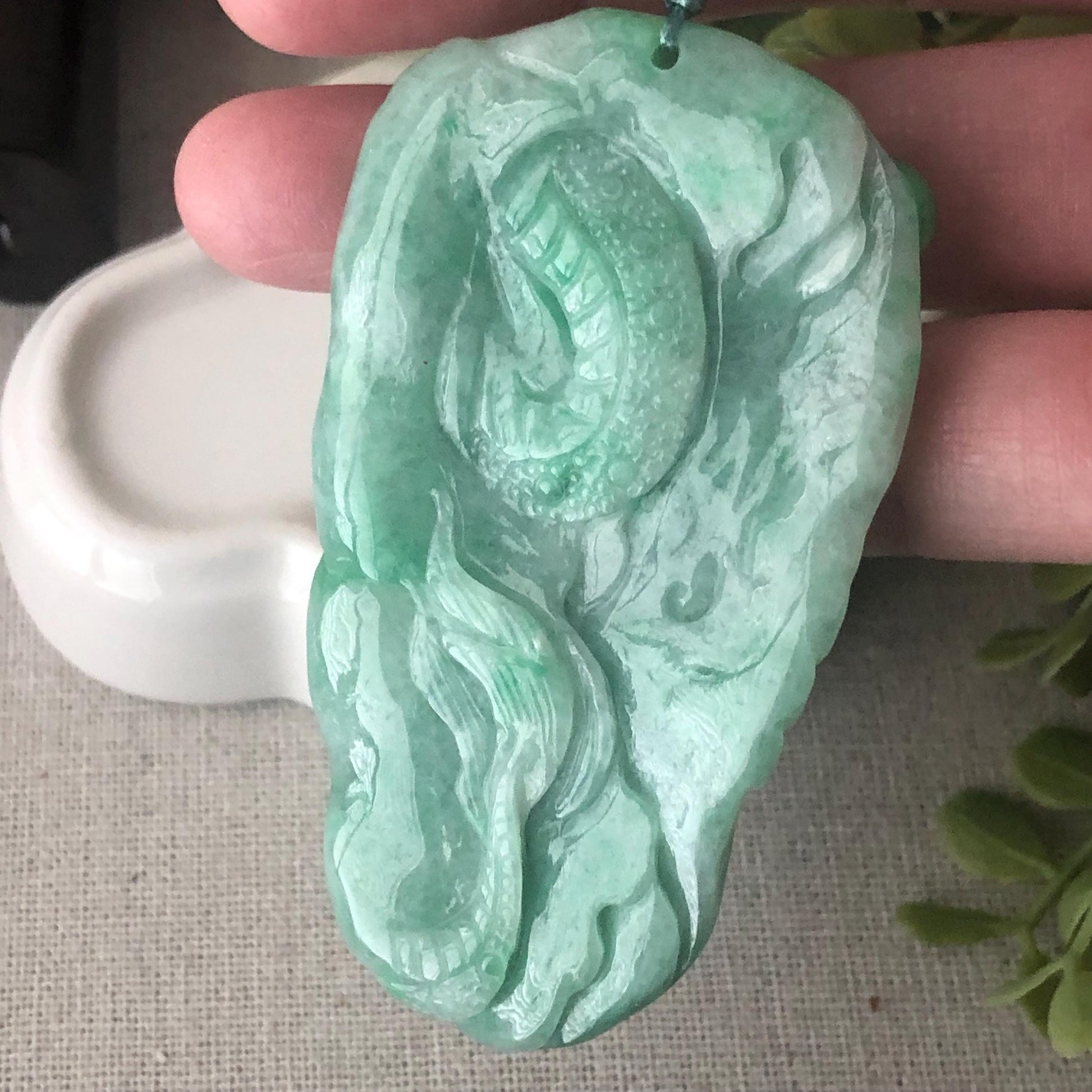 67.8 mm Jade Jadeite Green carved dragon Pendant