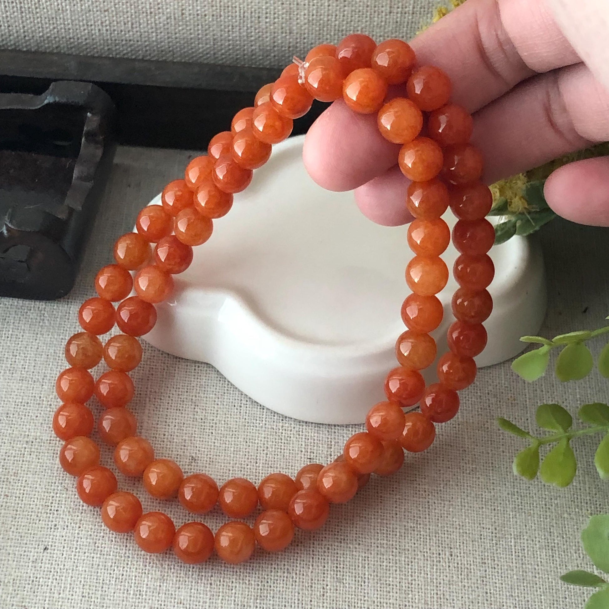 6mm Icy Glossy Red Orange Jadeite Jade Bead Necklace Bracelet