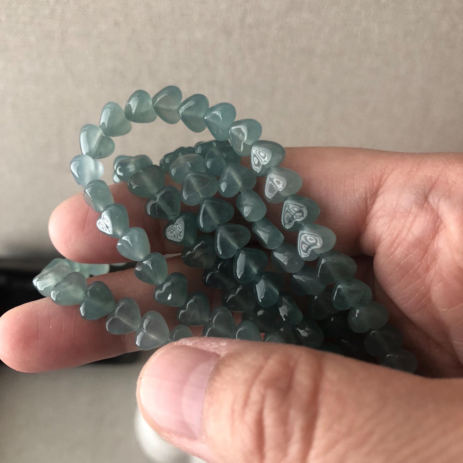7.1 mm High Icy Blue Glossy Heart Shaped Jade Bead Bracelet Necklace