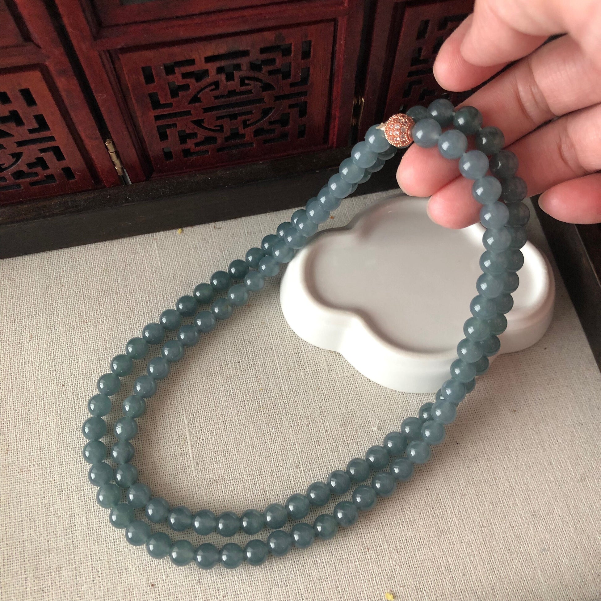 7.2mm RARE navy blue Jadeite Jade Bead Bracelet Necklace 7.2mm x 108 beads