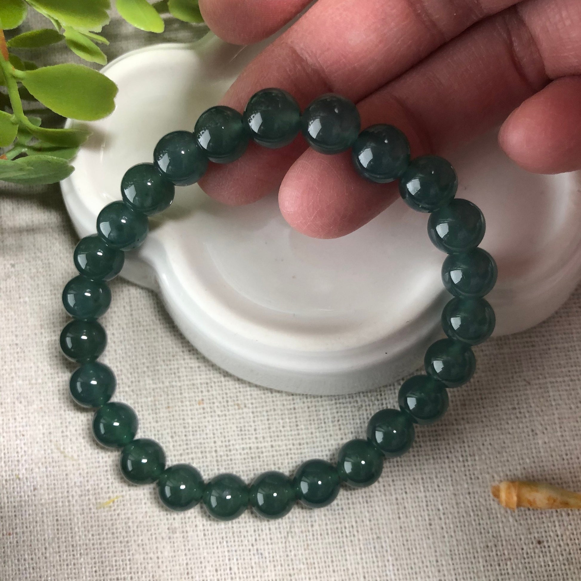 Title: 7.4 mm Jadeite Jade Icy Glutinous Green Blue Bead Bracelet 25 pcs.