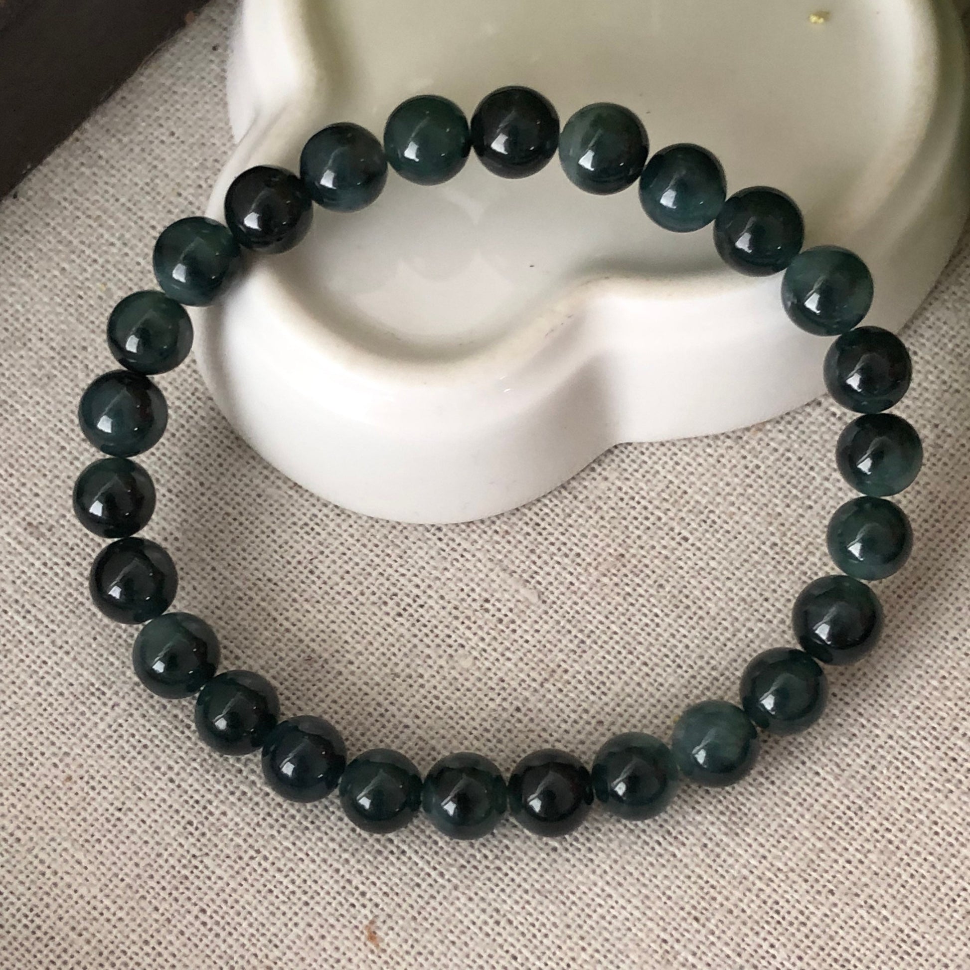 7.4mm Blue Green Gradient Jadeite Jade Bead Bracelet
