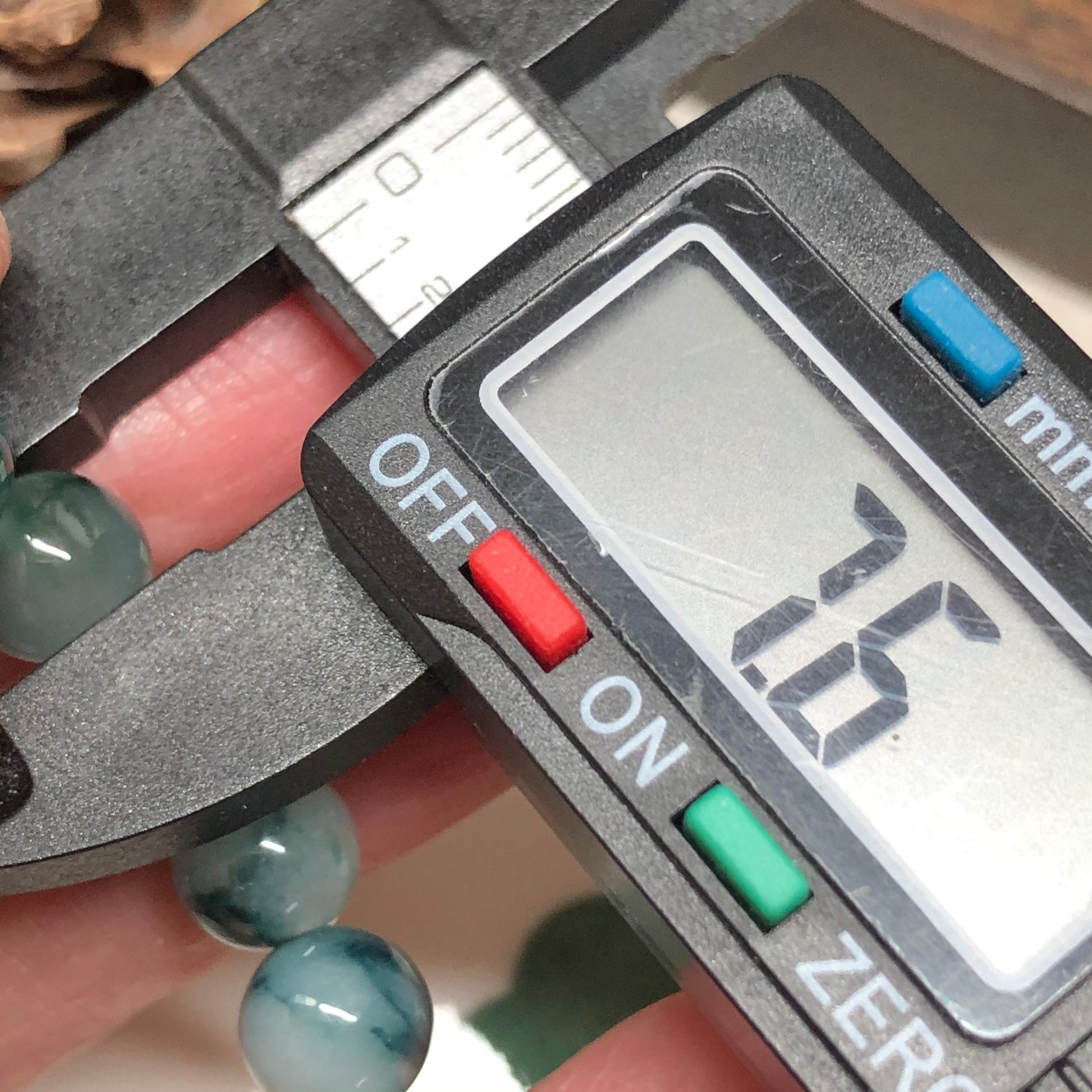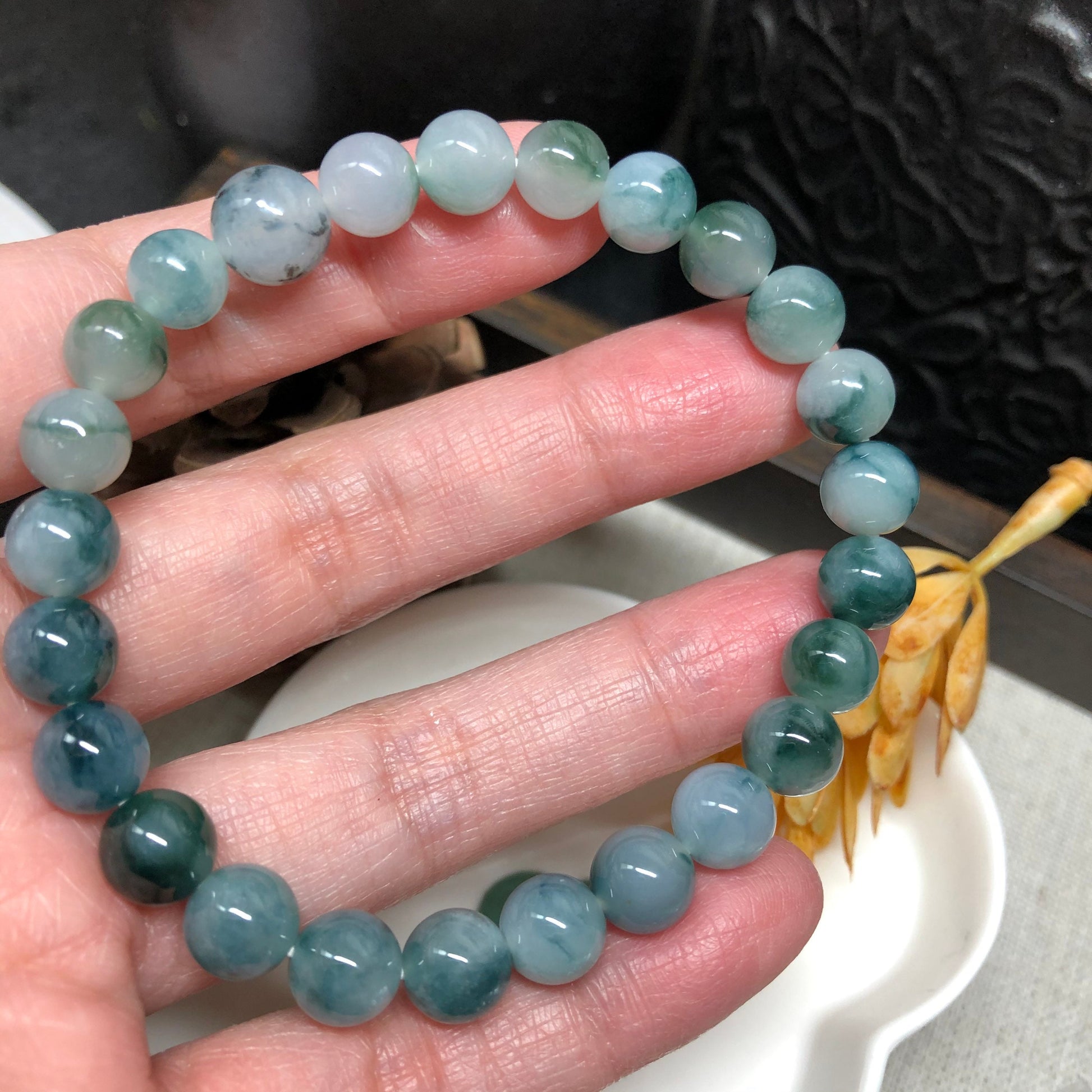 7.6 mm Grade A Green Blue Float Flowers Jadeite Jade Bead Bracelet