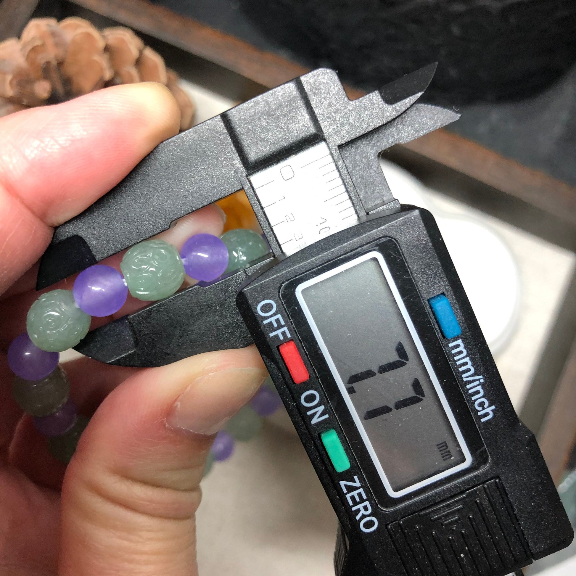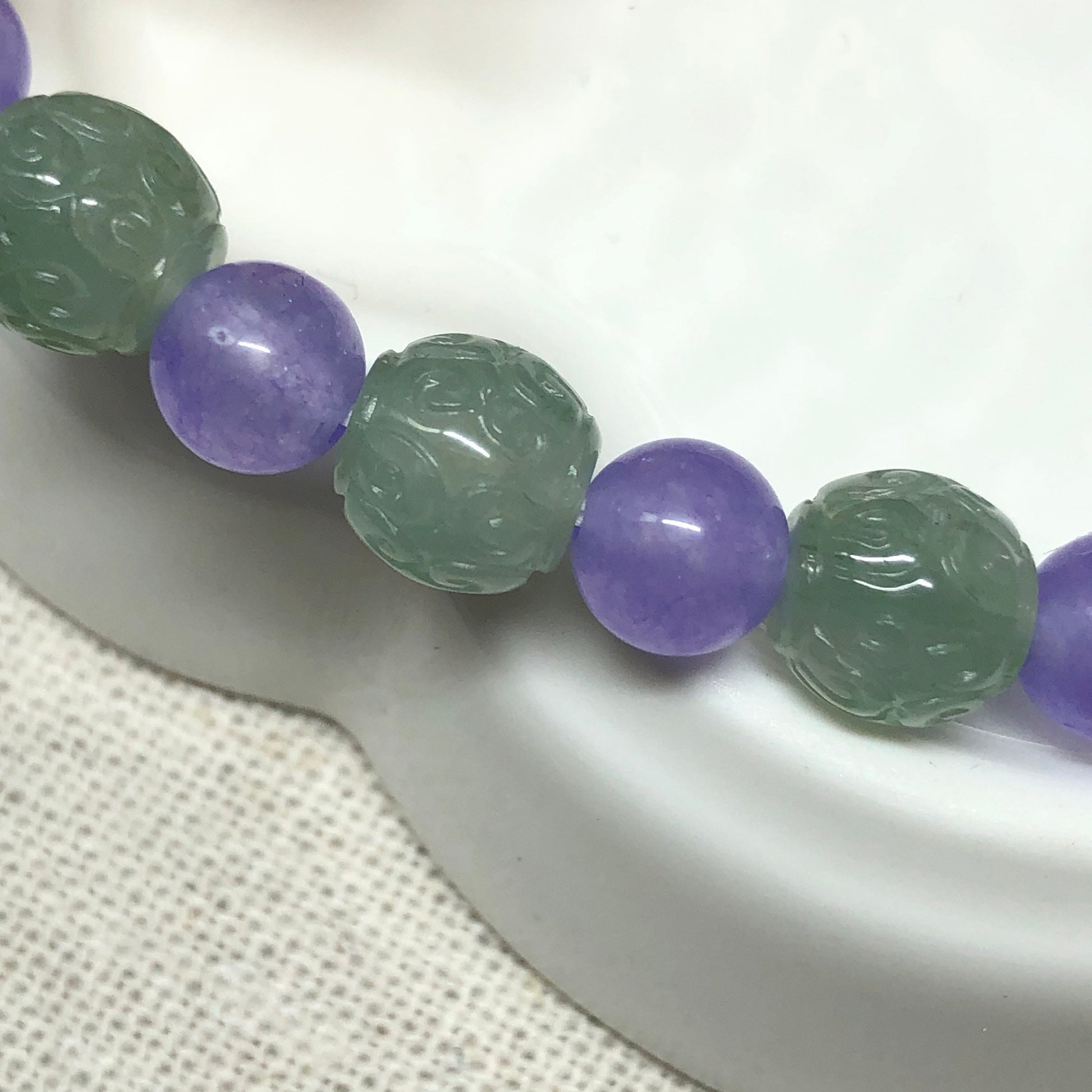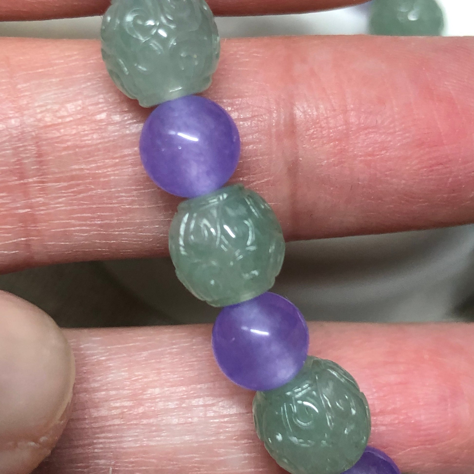 Jade Measurement: Approximately 7.7 mm x 14 pcs. (Green) 6.7 mm x 14pcs. (Purple)