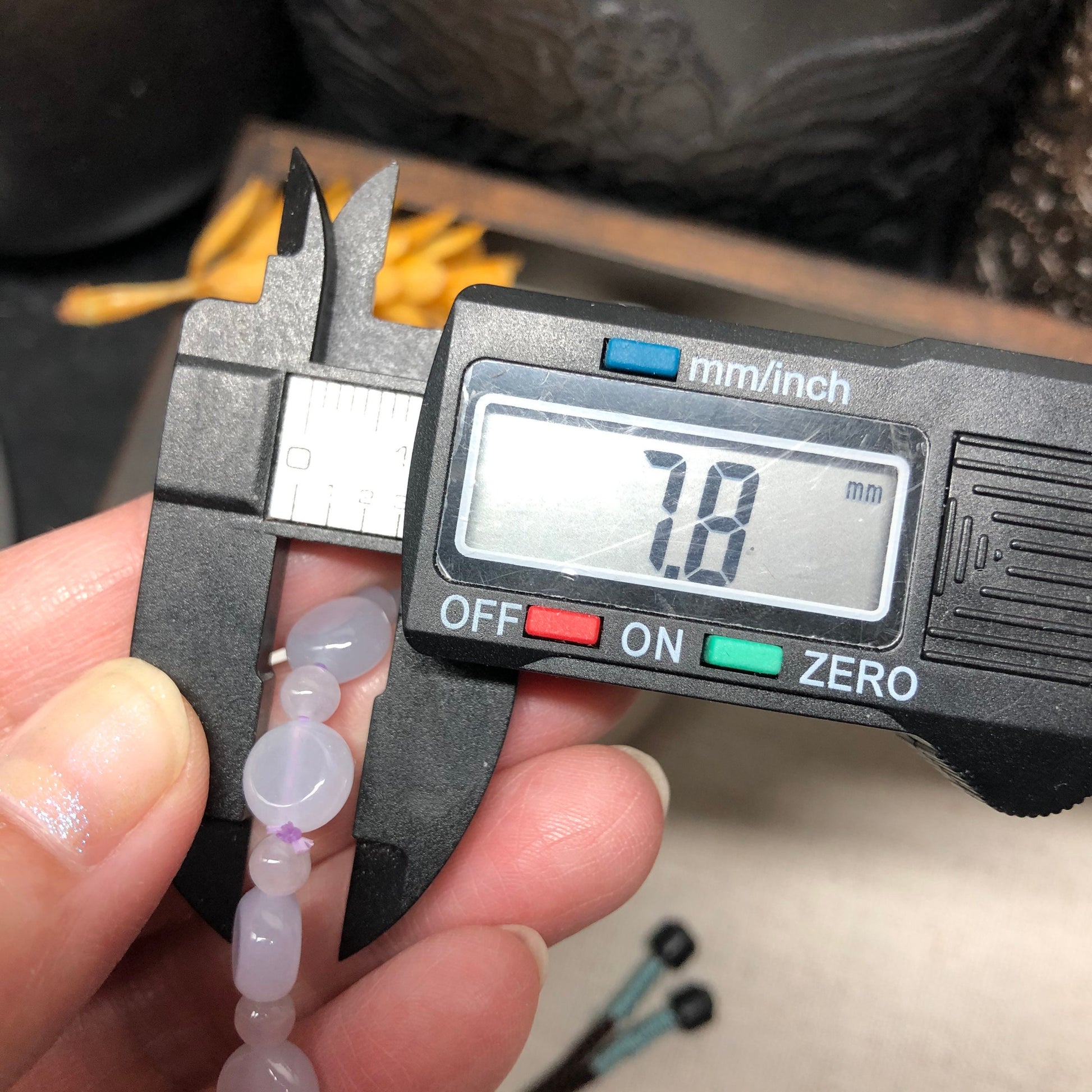 7.8 mm Grade A Icy Glutinous Lavender Flat Jadeite Jade Bead Bracelet 16 pcs.