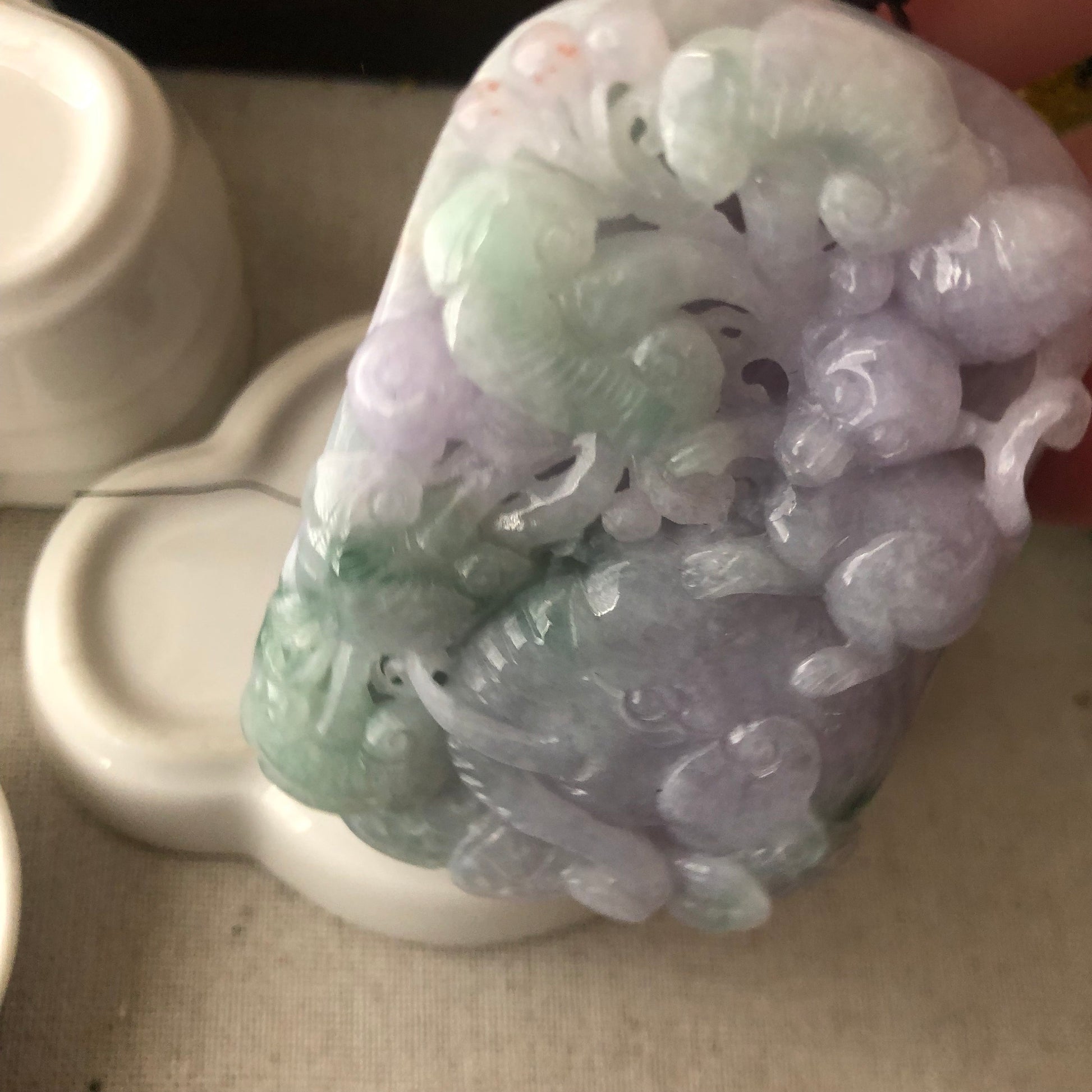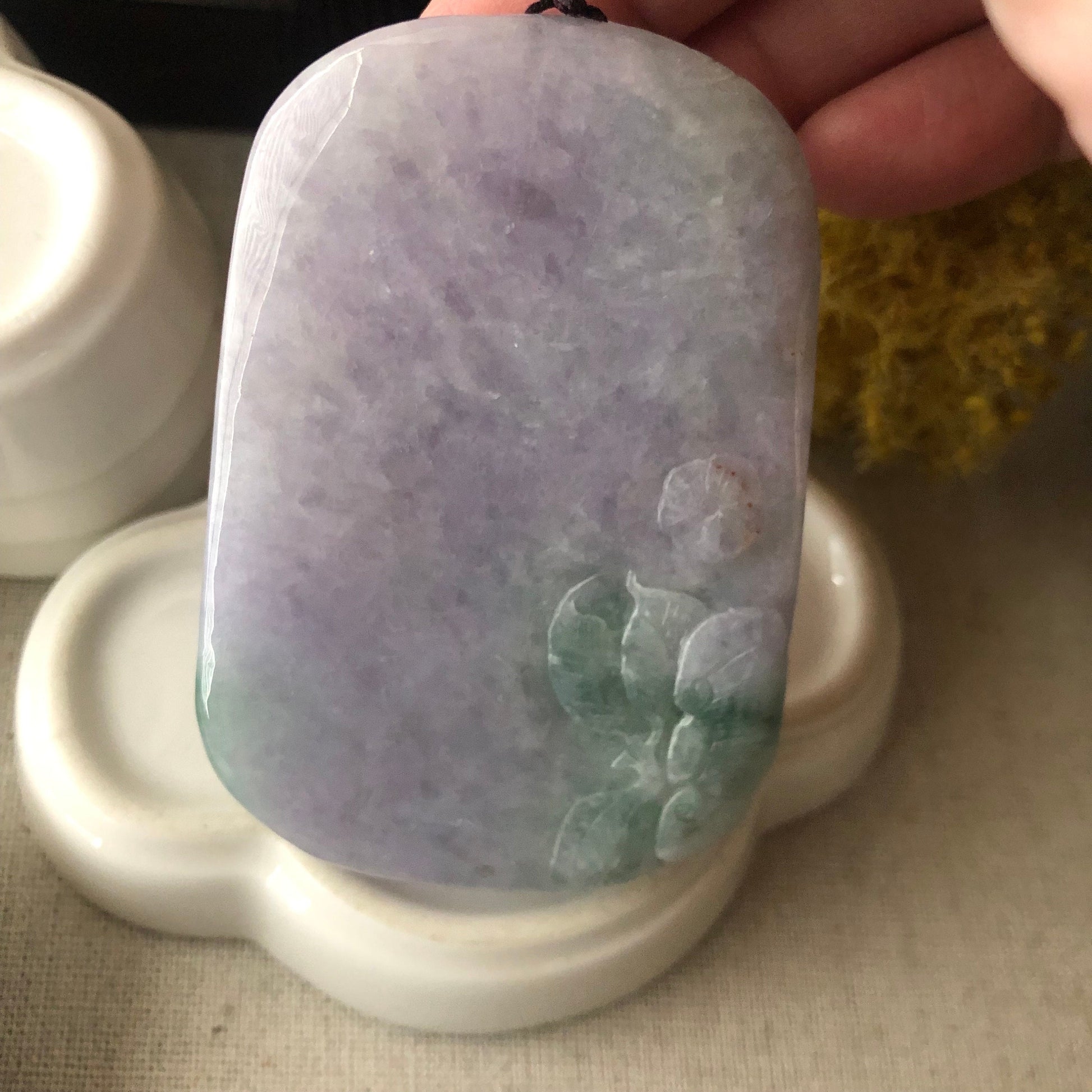 70 mm Lavender Green 3D Carved Monkey Elephant Ruyi Flower Pendant