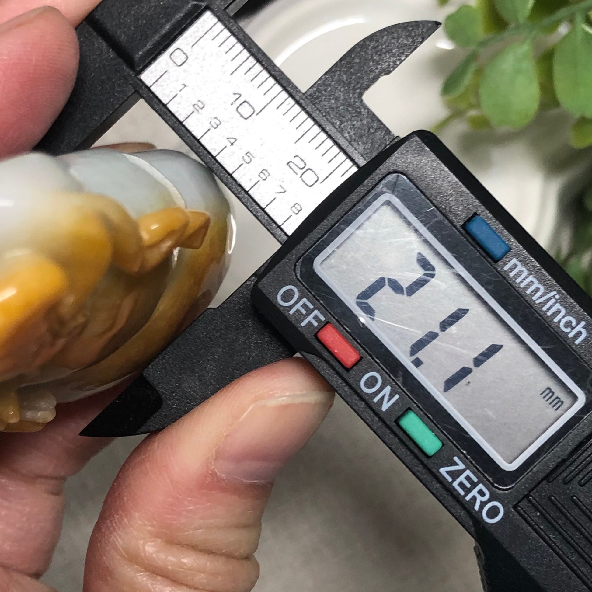 71.6mm Jadeite Jade Big Hulu 葫蘆 Gourd Yellow Brown Ruyi 如意 Keychain Hand Medallion
