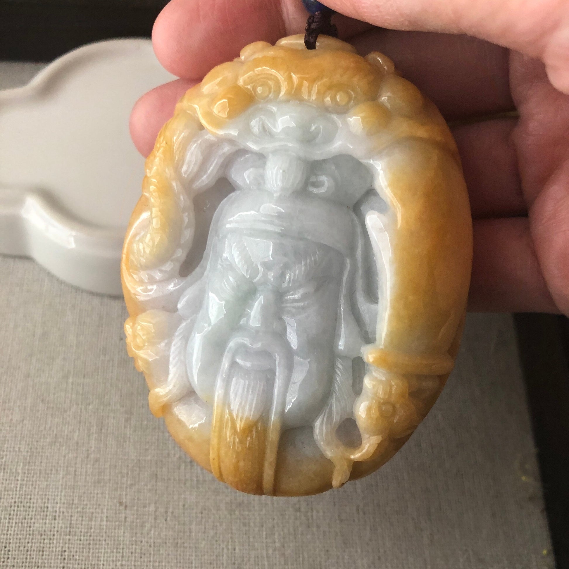 Comments: Detailed Texture.Beautiful Grade A carved general embed within a dragon mask. Excellent workmanship. Item will have stone lines or crevices. These are all natural and they are not flaws. They are not cracks. Attached with a hand string for display.
