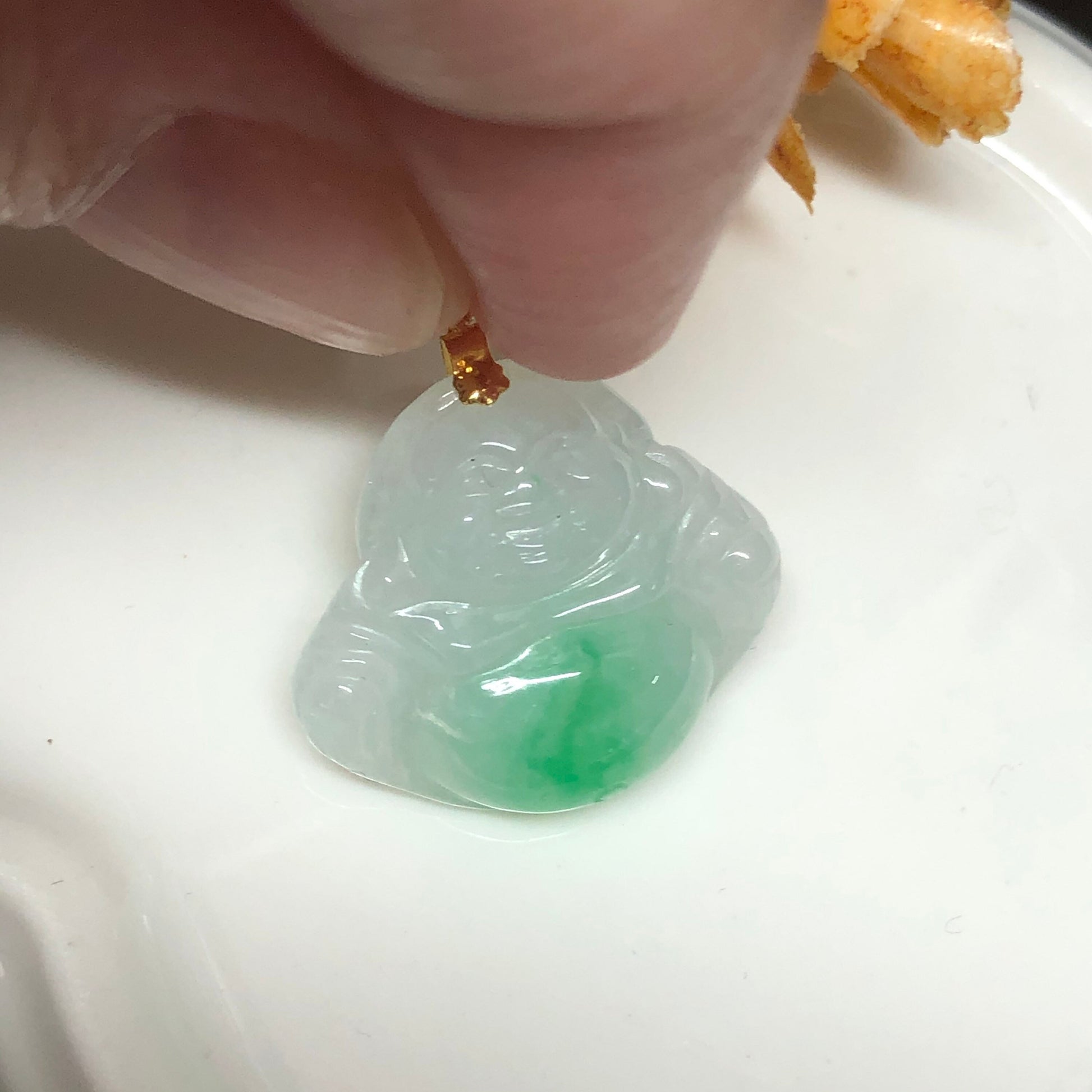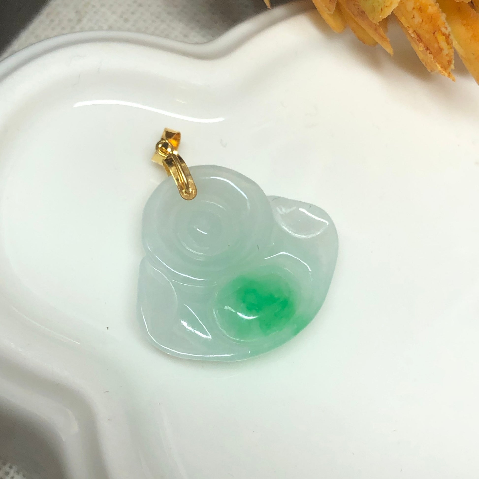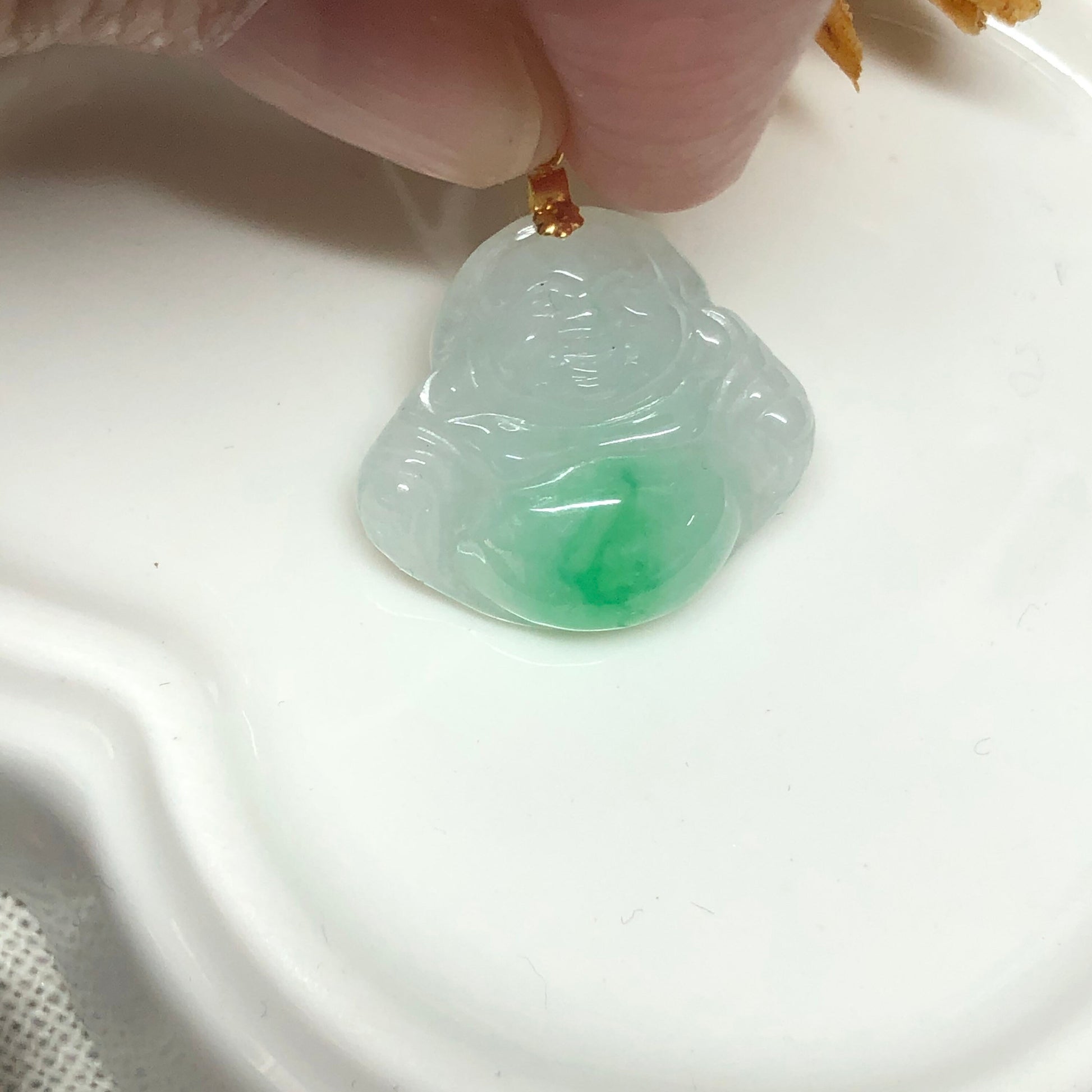 Comments: Beautiful glutinous texture. Unique gradient. Comes with 18K yellow gold buckle. Dainty and sweet. Nice for children or ladies for a solid pendant.