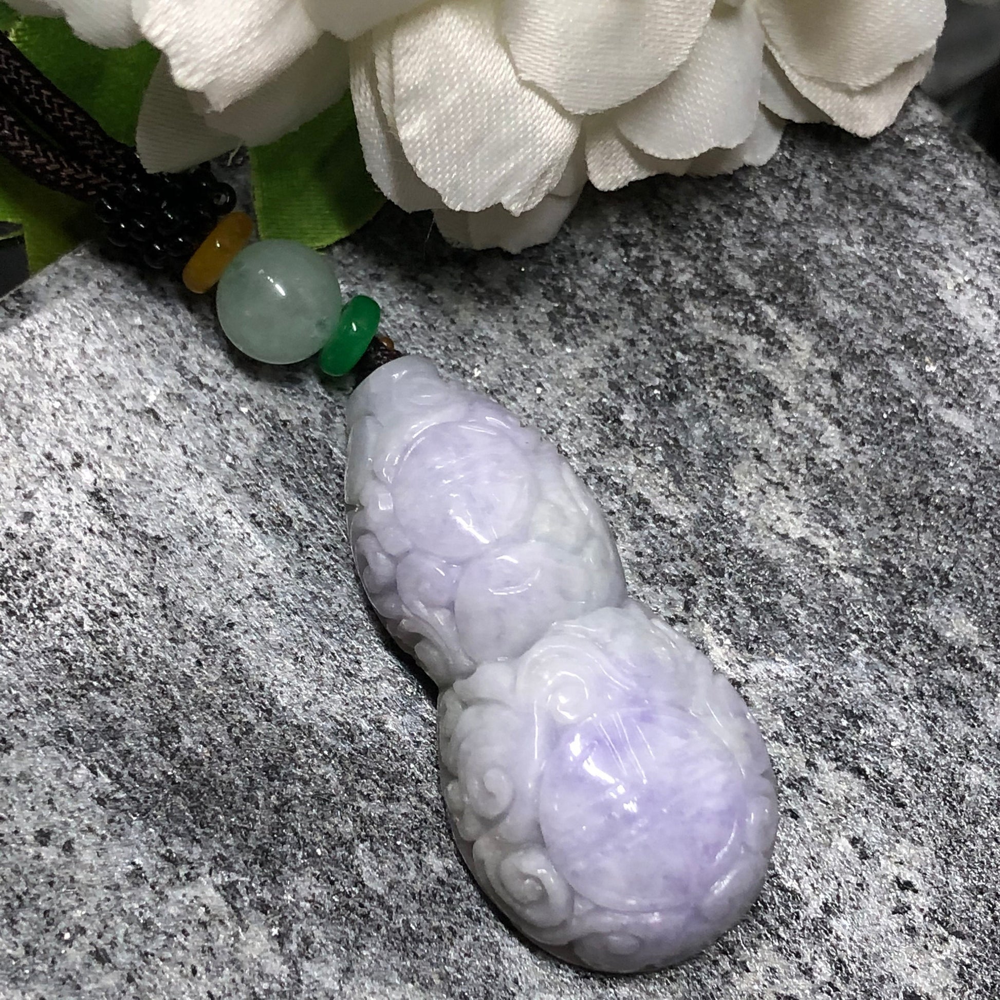Certified Myanmar Grade A RARE Carved Lavender Green Jadeite Jade Gourd Pendant