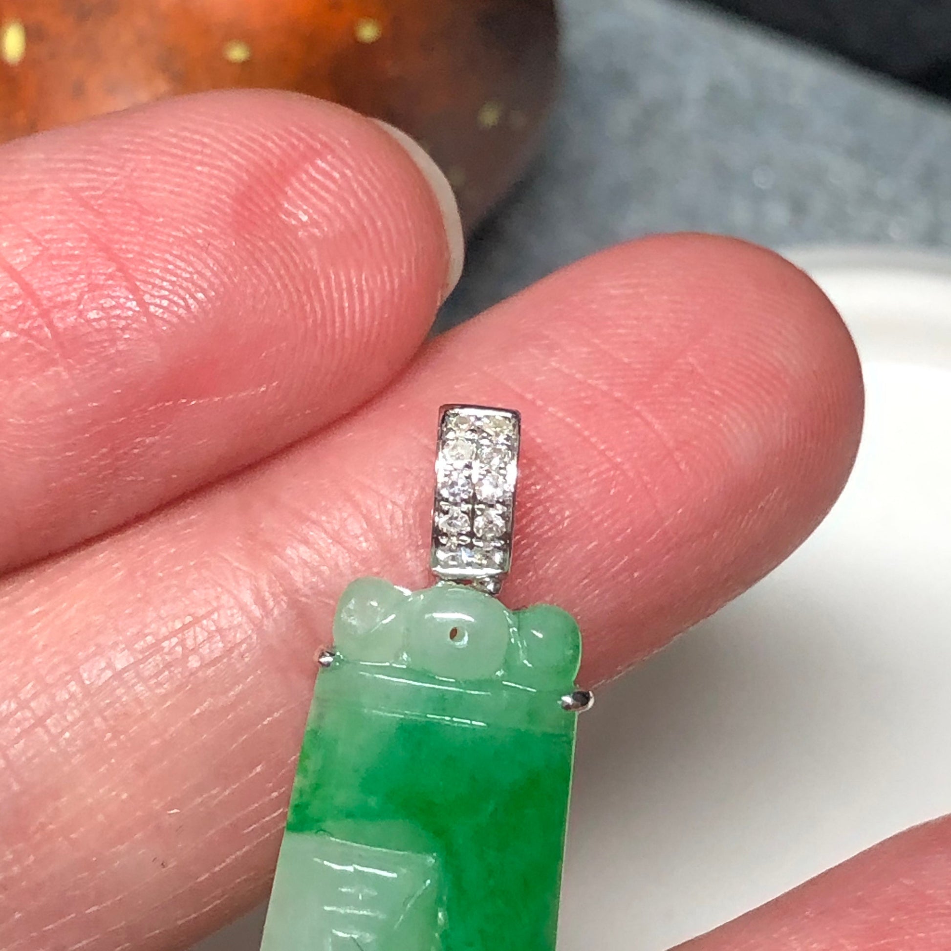 Certified Myanmar Grade A Yang Green Asian Carved Words Pendant