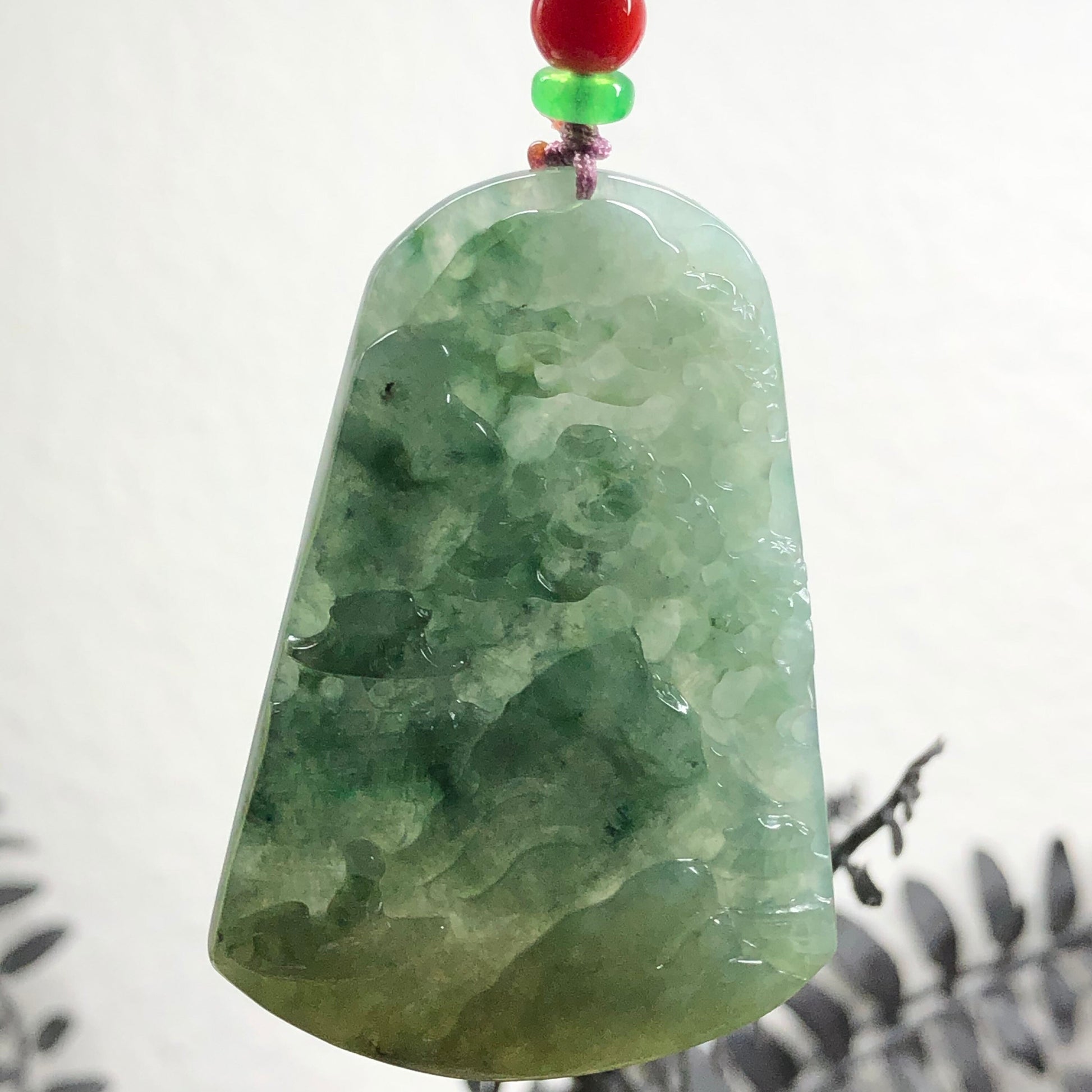 Grade A Carved Yellow Green Jadeite Jade Mountain Landscape Scenery Pendant with Neck Rope Tie