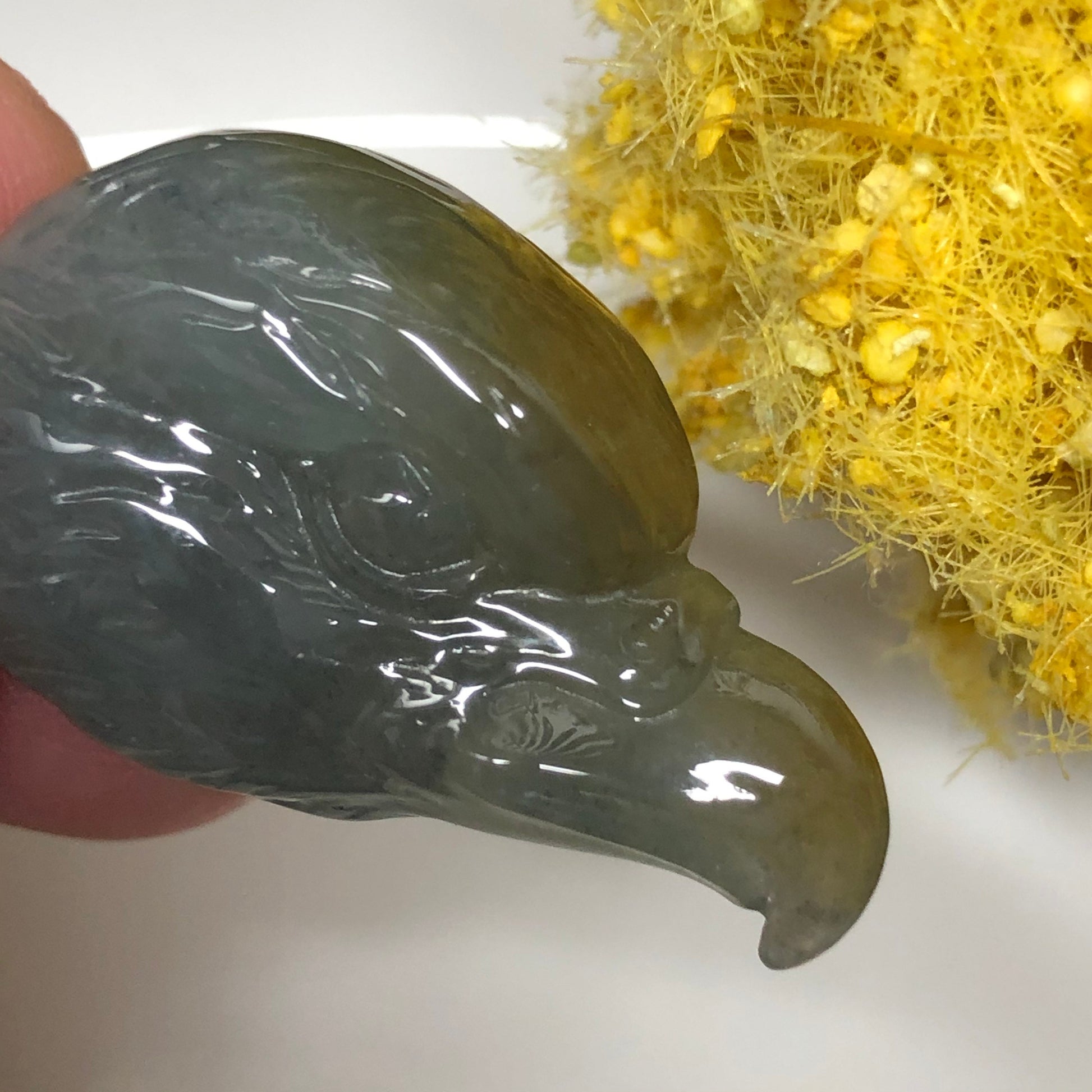 Grade A Myanmar Translucent Carved Eagle Head Jadeite Jade Pendant with Tie Rope Skeleton