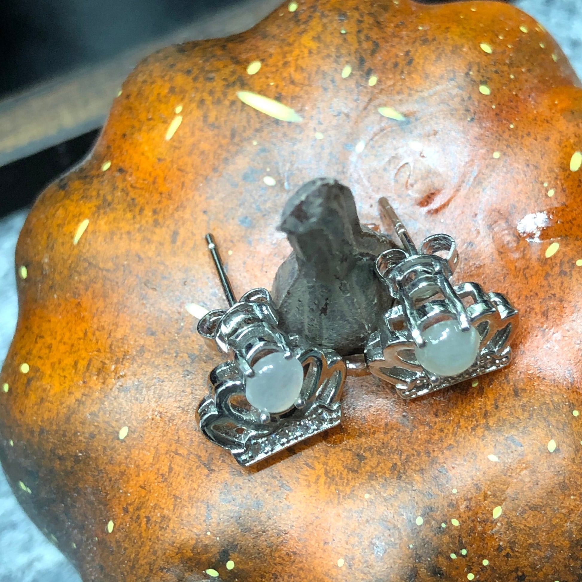SALE: Grade A Jadeite Jade Mini Cabochon Earring 925 Sterling Silver Princess Crown Shaped